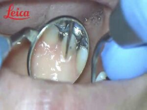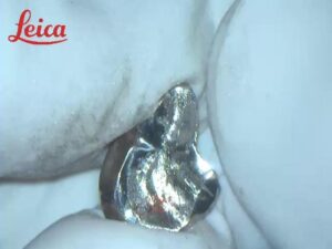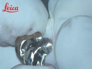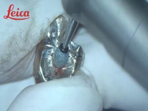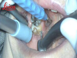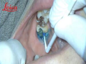 虫歯を取り終えた、詰め物を入れるために歯の形を整えます。この処置でもマイクロスコープの拡大視野と明るい光は機能を発揮します。