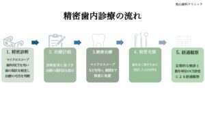 歯を健康に残したい。その想いに一歩深く応えるために、当院では特に高度な精度が求められる症例に対し、マイクロスコープや歯科用CTによる『精密治療』を選択肢としてご用意しています。細部まで徹底的にこだわり、抜歯を回避し、歯の寿命を最大限に延ばすための厳格なプロセスを大切にしています。」